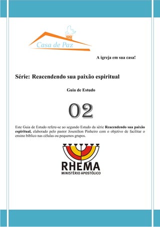 Este guia de estudo discute como recomeçar após um declínio espiritual. Apresenta exemplos bíblicos de Adão e Eva e Davi, que tentaram esconder seus erros em vez de reconhecê-los. Ensina que é preciso 1) reconhecer a queda, 2) arrepender-se sinceramente, e 3) voltar a praticar as boas obras como antes, para que Deus perdoe e restaure. A conclusão enfatiza que a confissão trará perdão e mudança de caráter pelo Espí