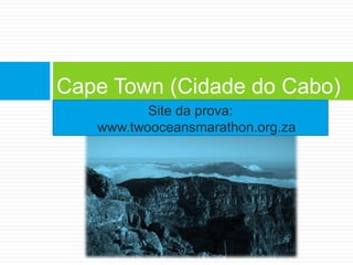 A Maratona Two Oceans 2013, realizada em Cape Town, África do Sul, ocorreu nos dias 29 e 30 de março, oferecendo provas de 5km, meia maratona de 21km e ultramaratona de 56km. O evento atraiu atletas de todo o mundo e incluiu uma corrida gratuita, além de confirmação necessária através de chip para participação nas maratonas. Ofereceu também pacotes de viagem com diversos serviços para os participantes durante o evento.