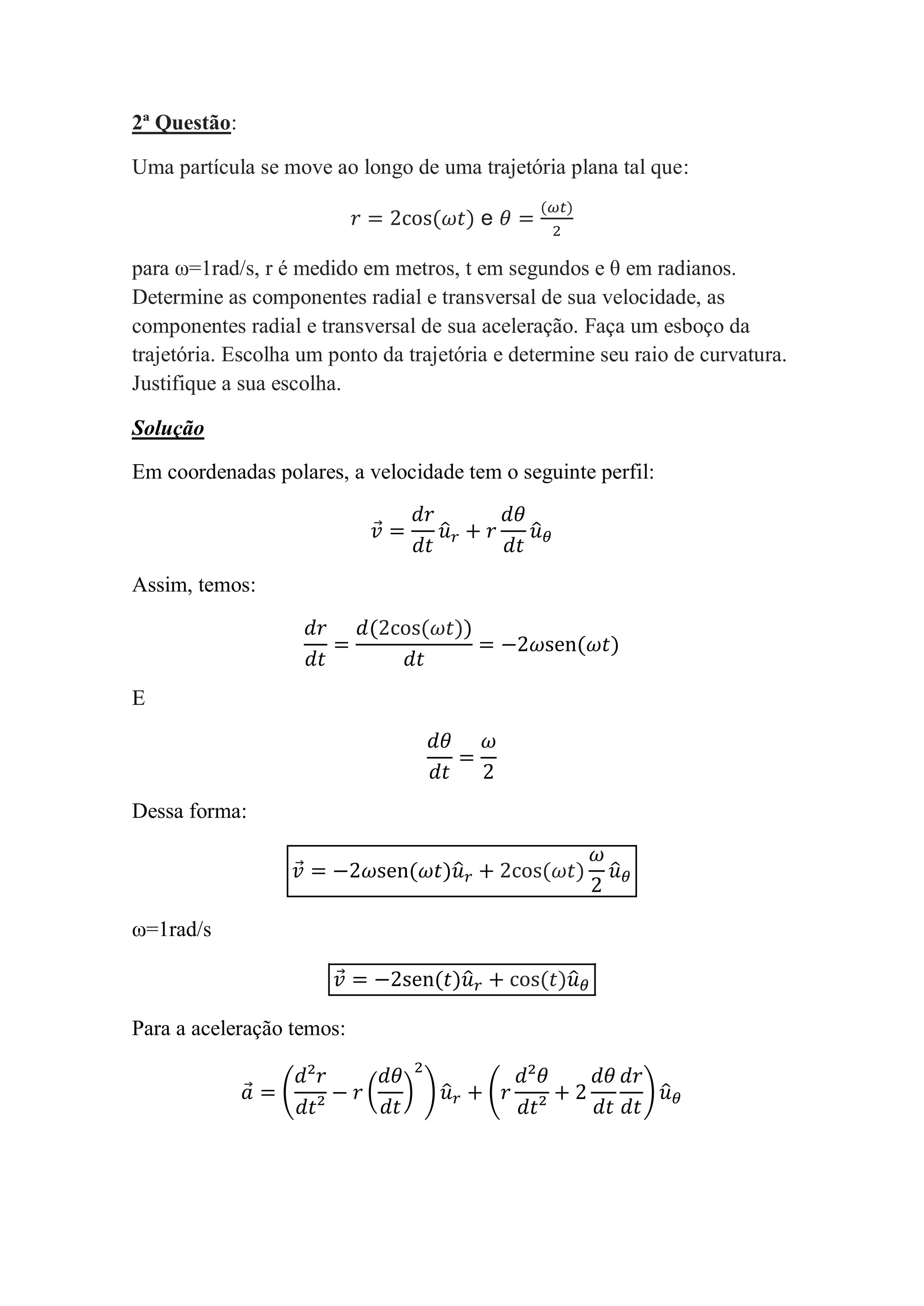 3) As componentes da aceleração são a aceleração radial nula e a aceleração tangencial igual a -ω2r.