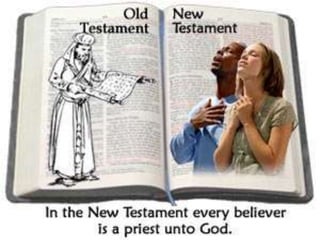 O documento discute a necessidade de Jesus oferecer sacrifícios como sumo sacerdote e como ele mediou uma nova aliança melhor entre Deus e o povo. Ele cita trechos da Bíblia que falam sobre como a nova aliança é superior à antiga por ter leis internas e perdão de pecados.