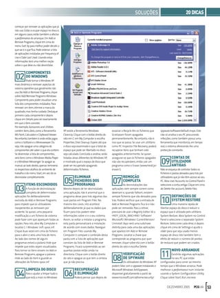 1) O documento fornece 20 dicas para limpar e otimizar o desempenho de um PC, libertando espaço no disco rígido e melhorando a velocidade do sistema.