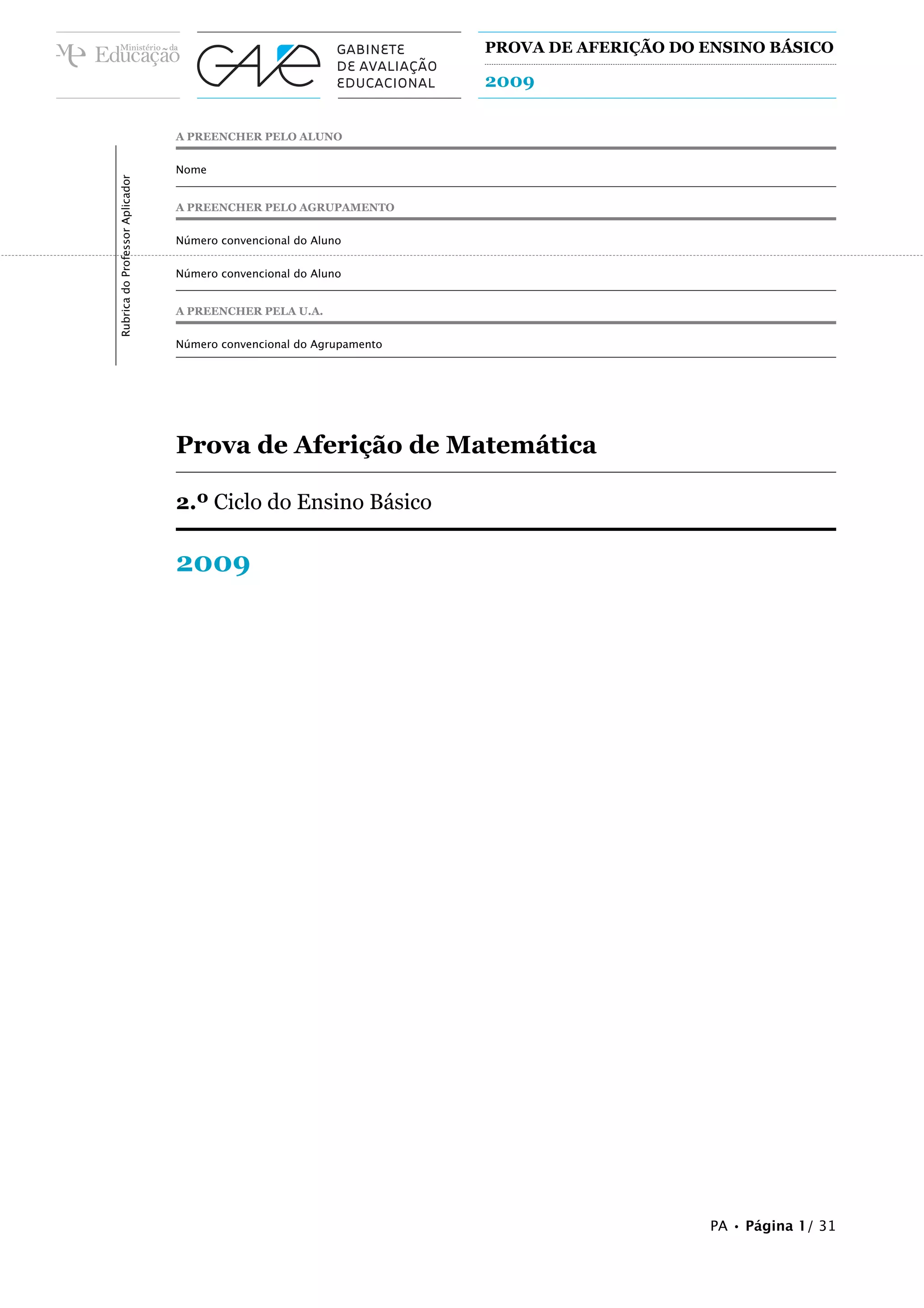 This document contains instructions and questions for a student assessment test in basic education. It provides details on how to complete the test, such as using a pencil or pen, and allocates 50 minutes for each of the two parts. The test contains multiple choice, short answer, and problem solving questions across a range of math and reasoning topics.