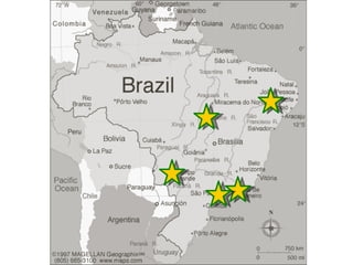Este documento resume a história do D-Lab Brasil de 2003 a 2010, incluindo seus projetos em comunidades no Brasil central e nordeste para melhorar a saúde, segurança alimentar e educação através de projetos de saneamento, produção de leite e ferramentas educacionais. Ele também lista parcerias comunitárias em todo o Brasil.