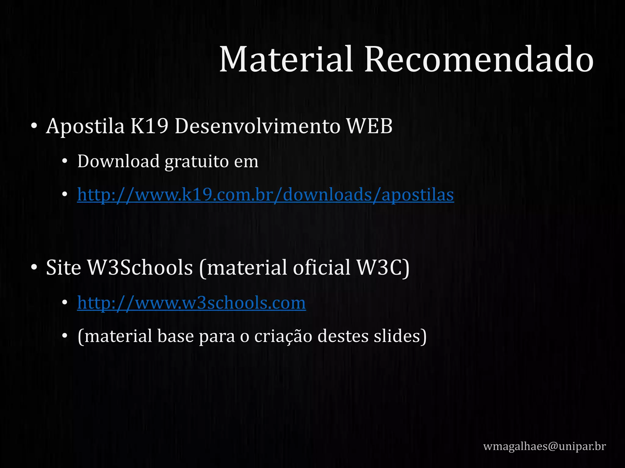 • FERREIRA, Elcio; EIS, Diego. HTML5 Curso W3C Escritório Brasil. Disponível em