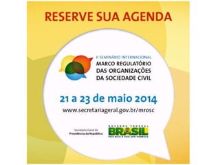 Este documento resume as principais mudanças propostas na legislação sobre organizações da sociedade civil no Brasil, incluindo novas exigências para as organizações, regras mais claras para a execução de projetos e prestação de contas, e a criação de mecanismos de monitoramento e avaliação.