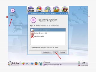 O documento discute o sistema operacional Linux, software livre e ferramentas educacionais disponíveis no Linux. Explica que o Linux foi desenvolvido por Linus Torvalds em 1991 e hoje existe diversas distribuições criadas por empresas e projetos de comunidades. Também define software livre como software que pode ser usado, copiado e modificado livremente, geralmente acompanhado de uma licença que permite isso. Finalmente, lista vários programas educacionais disponíveis no Linux.