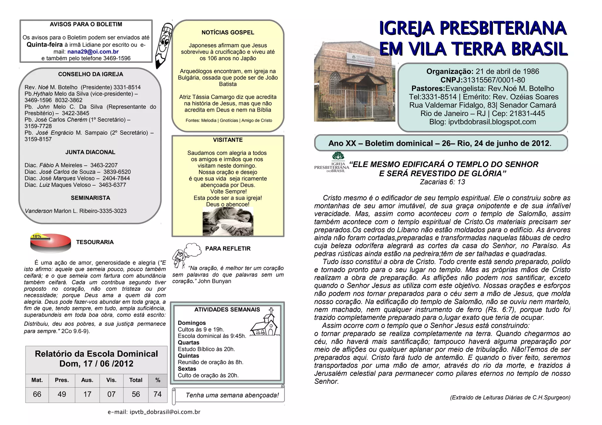 Ano XX – Boletim dominical – 26– Rio, 24 de junho de 2012.