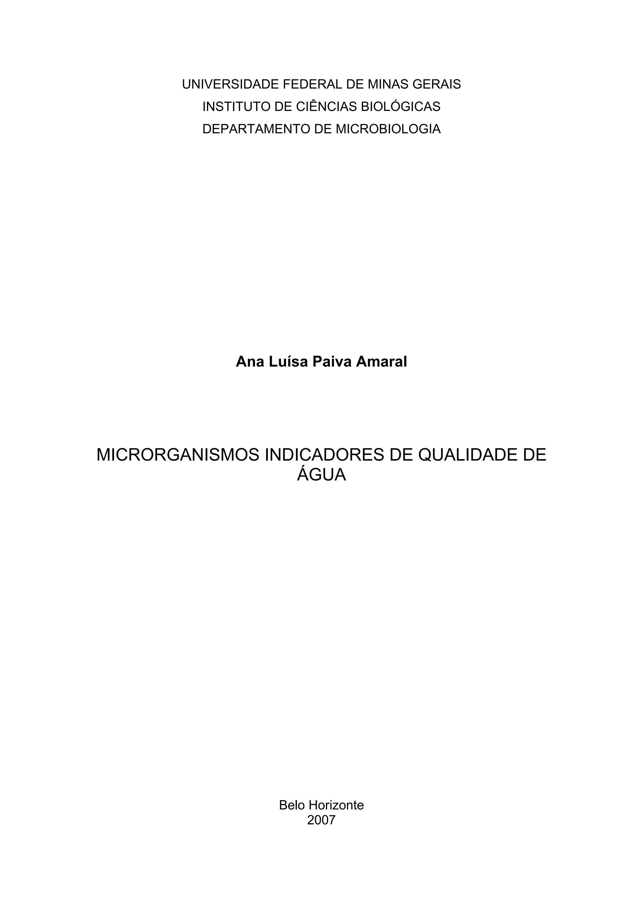 - O objetivo é indicar as características e ocorrência desses microrganismos através de revisão bibliográfica para que possam ser usados como indicadores da qualidade da água.