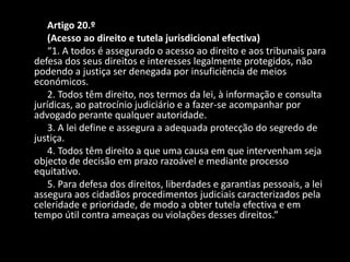 O documento discute os objetivos da Revolução de Abril de 1974 e sua implementação atual, cobrindo tópicos como liberdade, autonomia regional, descolonização e democracia. Ele também examina vários artigos da Constituição Portuguesa de 1976 sobre direitos e liberdades fundamentais.