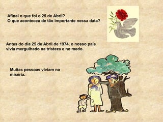 No dia 25 de Abril de 1974, militares portugueses liderados pelo Movimento das Forças Armadas derrubaram o regime ditatorial de Marcelo Caetano através de um golpe de estado sem violência, pondo fim à guerra colonial e inaugurando uma nova era de democracia e liberdade para Portugal.