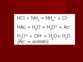2) A teoria de Brønsted-Lowry define ácidos e bases em termos de doação e aceitação de prótons, sendo ácidos espécies doadoras de prótons e bases espécies aceitadoras de prótons.