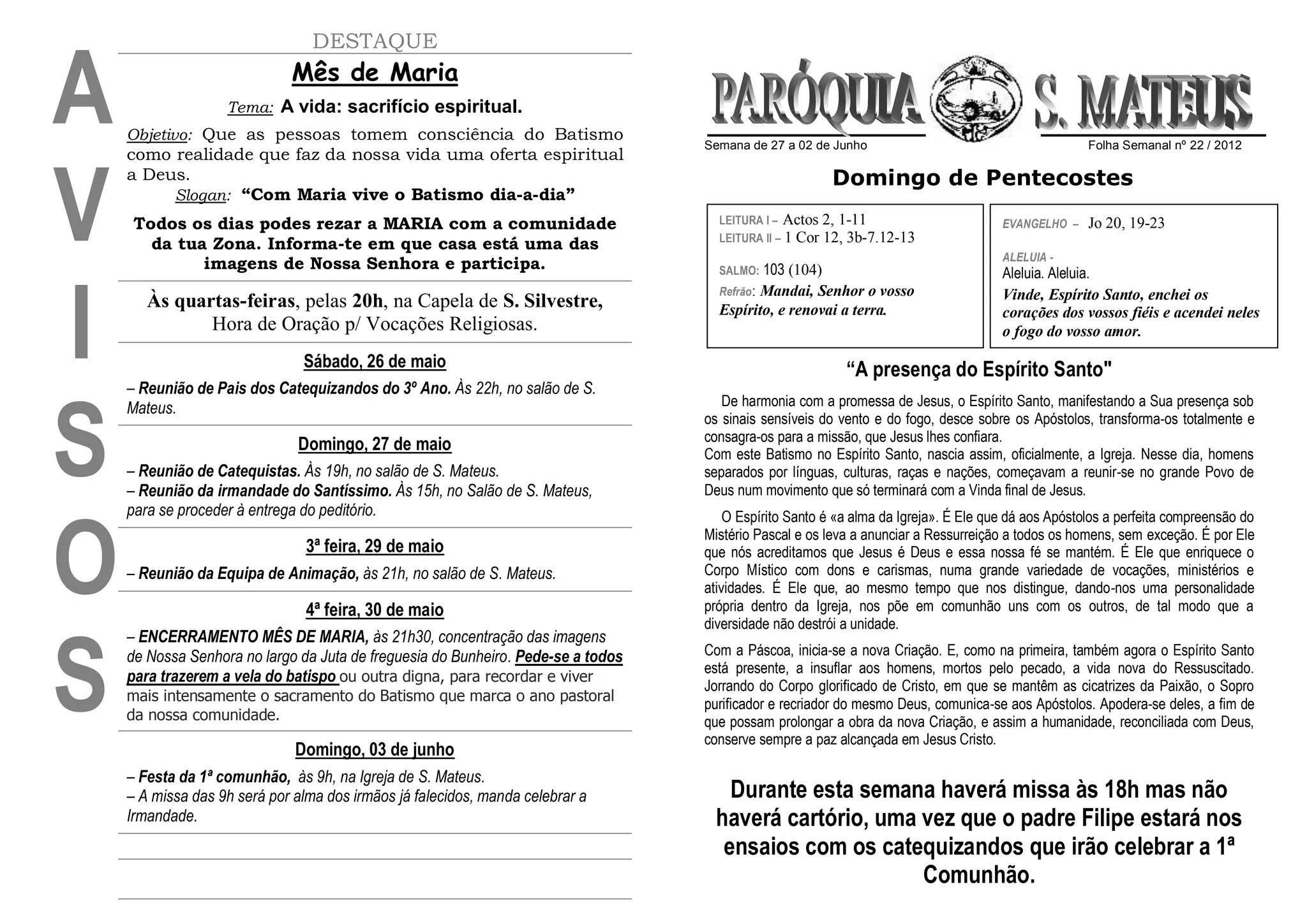 3) O documento também lista eventos e reuniões da comunidade religiosa nas próximas semanas.