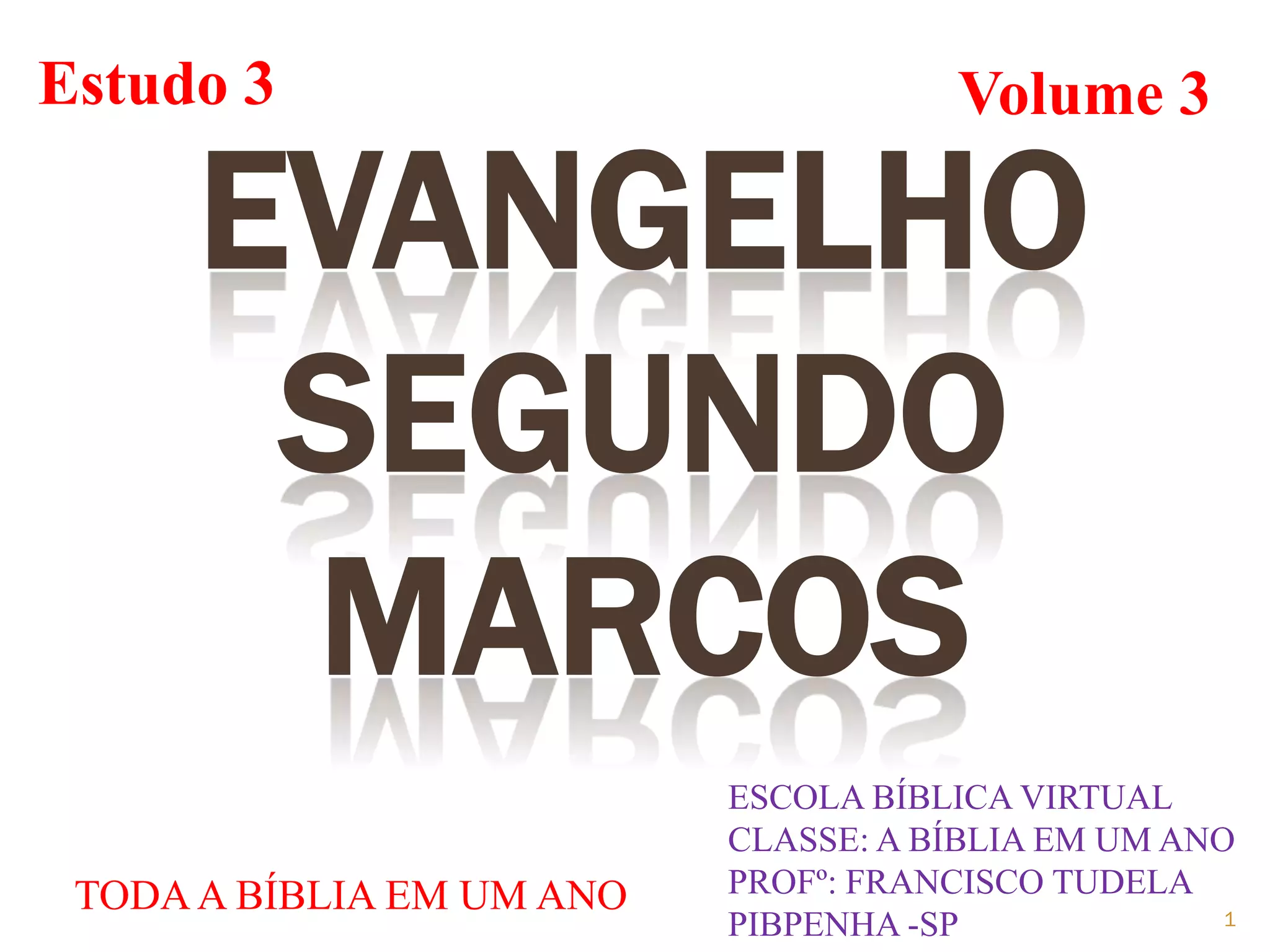 1. O Evangelho de Marcos é o primeiro evangelho escrito entre 64-70 d.C. por João Marcos para encorajar os cristãos romanos durante a perseguição de Nero.