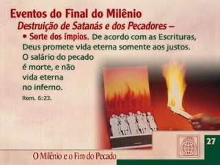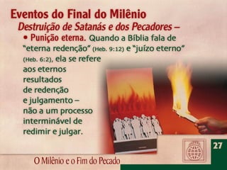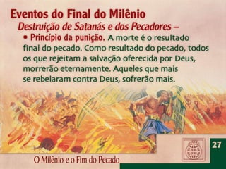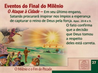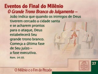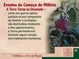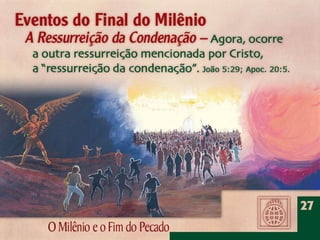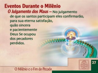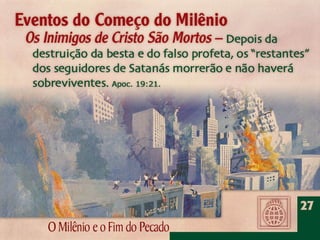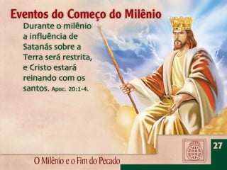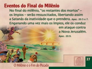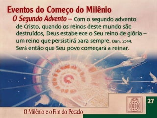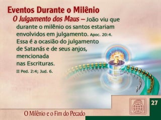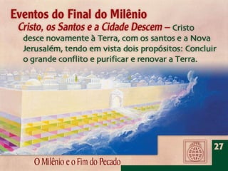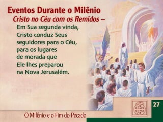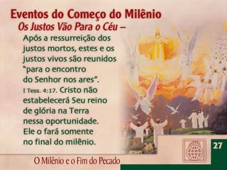 O milênio é o reinado de mil anos, de Cristo com Seus santos, no Céu, entre a primeira e a segunda ressurreições.