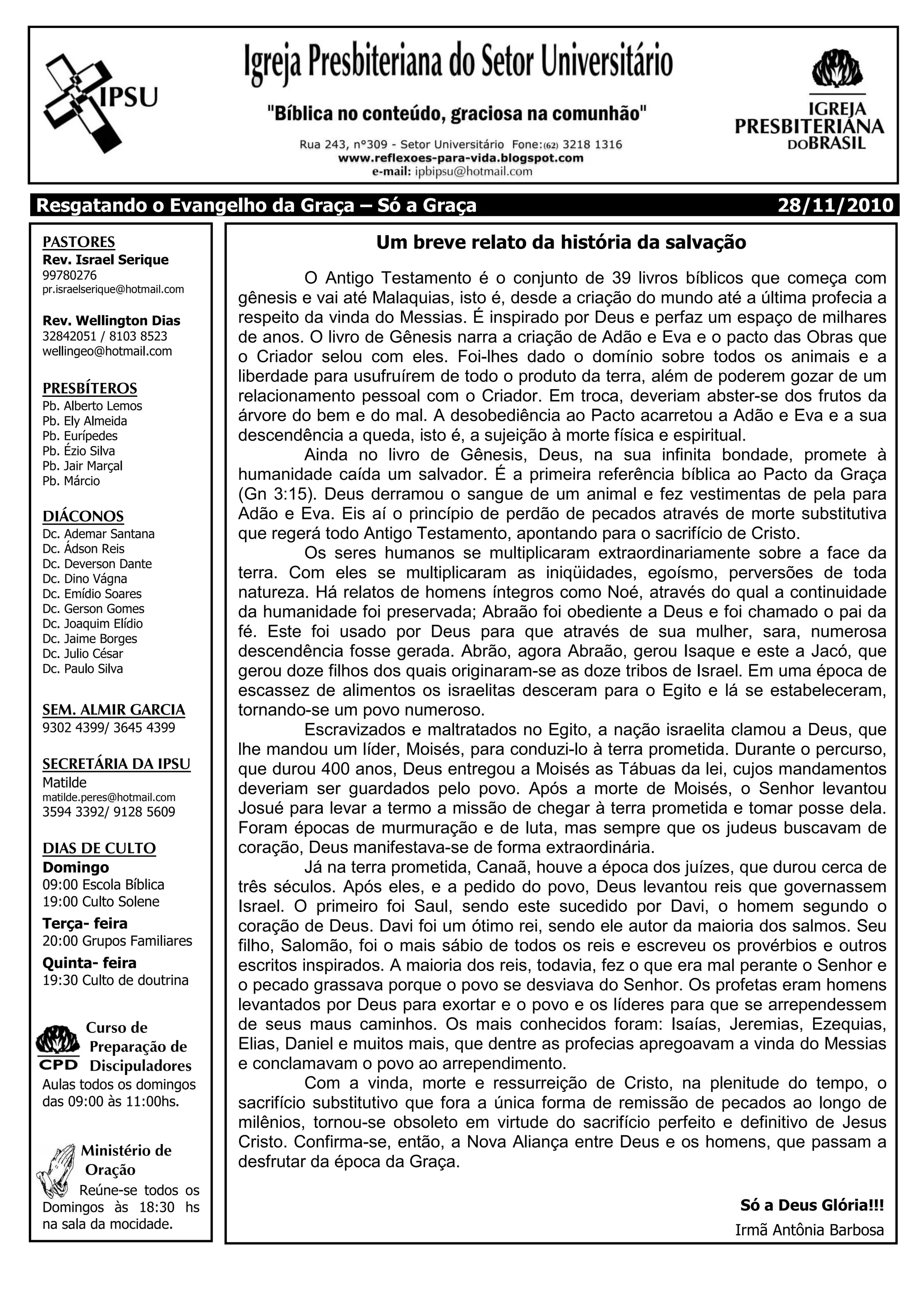 O documento fornece um resumo da história da salvação desde a criação até a vinda de Cristo, destacando: