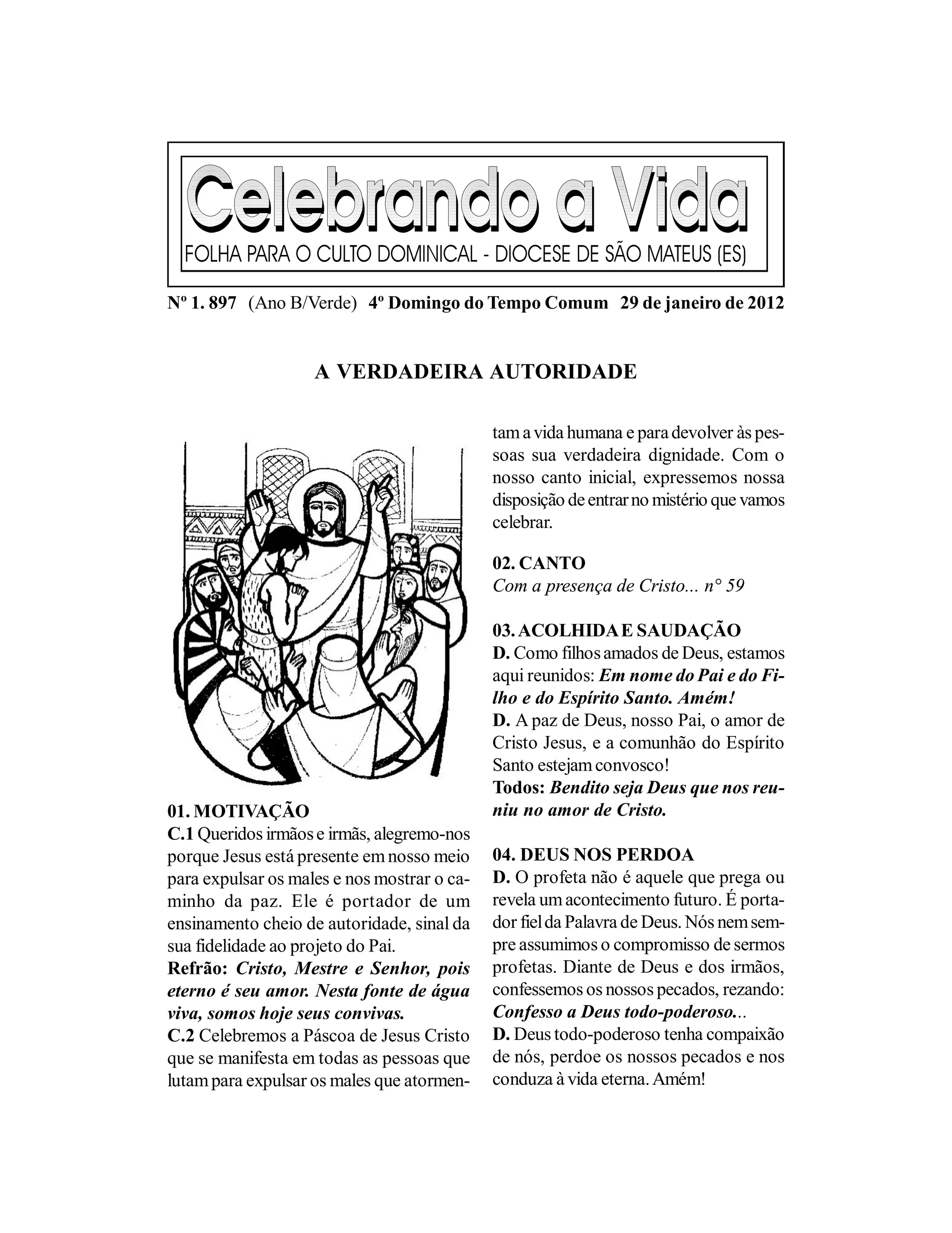 1) O documento fala sobre a autoridade verdadeira de Jesus Cristo, que ensina de forma nova e libertadora, impressionando a todos.