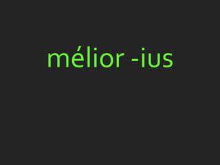 Este documento lista palavras latinas relacionadas a comparações de quantidade e qualidade, incluindo termos para melhor, pior, maior, menor, mais, a maioria, mais velho, mais novo, mais duvidoso e mais adequado.