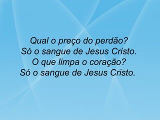O documento repetidamente afirma que só o sangue de Jesus Cristo pode limpar o coração, perdoar os pecados, dar paz divina e libertar do mal, provendo resgate e santidade.
