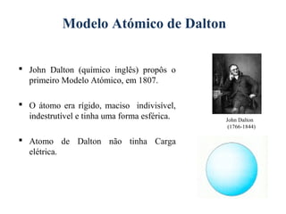 O documento descreve a evolução dos modelos atômicos, começando pelo modelo de Dalton, passando pelo modelo de Thomson e Rutherford, até chegar no modelo de Bohr. Os principais pontos apresentados são que o átomo não é indivisível, possui um núcleo central onde está a maior parte da massa, e os elétrons giram em órbitas definidas em torno do núcleo.