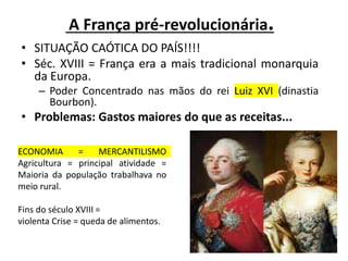 A Revolução Francesa começou em 1789 como uma rebelião contra o absolutismo monárquico e as desigualdades sociais na França pré-revolucionária. A queda da Bastilha marcou o início da revolução. A Assembleia Nacional Constituinte elaborou uma constituição em 1791, estabelecendo uma monarquia constitucional. Napoleão Bonaparte assumiu o poder em 1799 através de um golpe de estado, coroando-se imperador em 1804 e governando a França até sua derrota em Waterloo em 1815.
