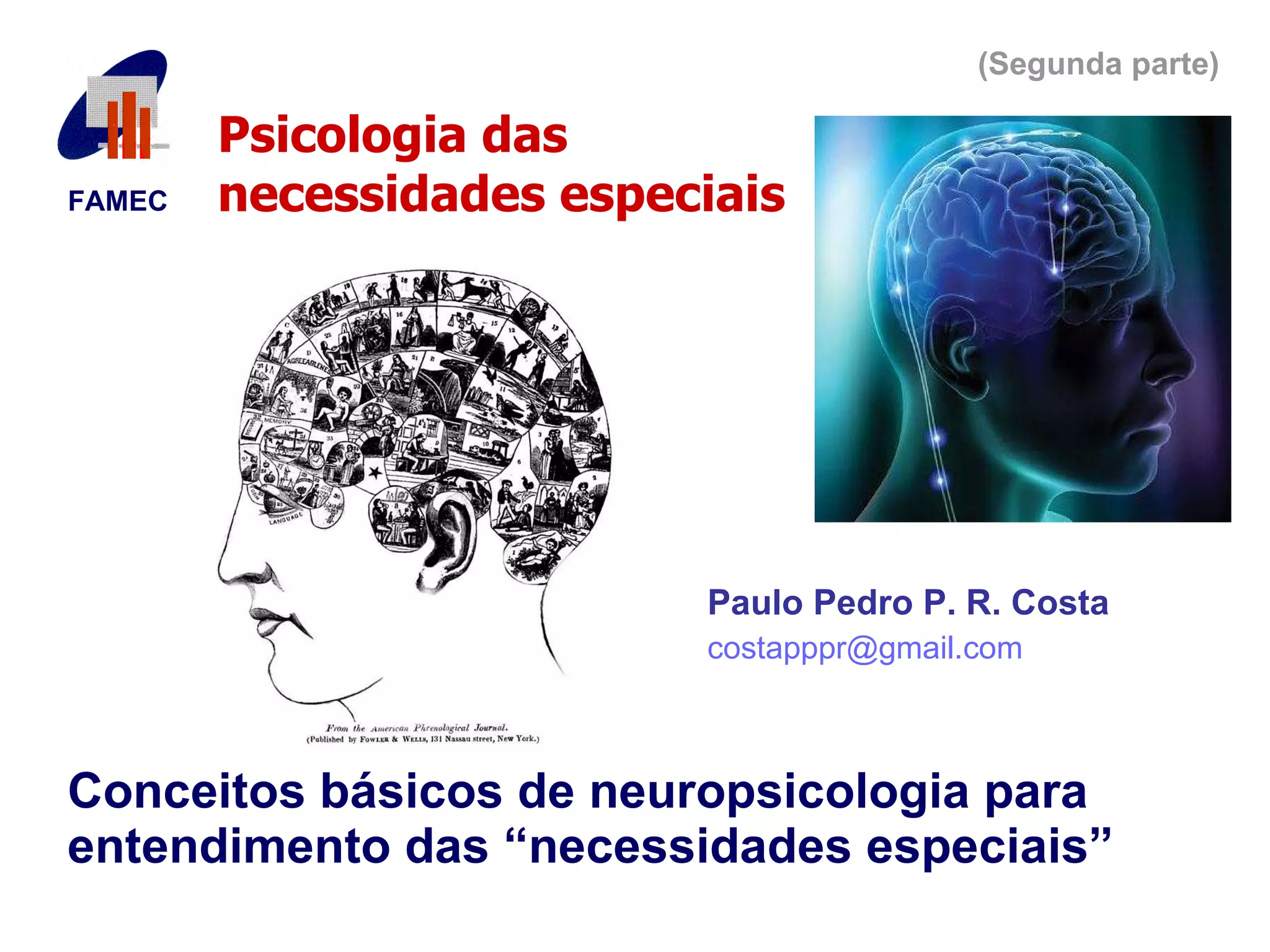O documento aborda conceitos fundamentais da neuropsicologia relacionados a 'necessidades especiais', discutindo a organização e funções do sistema nervoso central. Explora as bases biológicas de condições como autismo e déficit intelectual, enfatizando a relação entre fatores genéticos e neurológicos. Também analisa diferentes tipos de afasias e seus impactos na comunicação, destacando a importância da neurociência clínica na compreensão das funções cognitivas e de aprendizado.