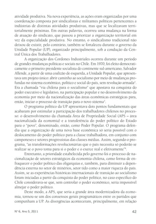 O artigo explora a participação dos trabalhadores chilenos nos cordones industriales durante o governo de Salvador Allende, destacando a integração territorial das demandas operárias e a nova organização sindical. Este movimento visava a nacionalização da economia e o controle popular sobre a produção, em um contexto de mudanças políticas e sociais significativas. A central única dos trabalhadores (CUT) e o governo de Allende buscaram formas de participação direta dos operários no processo produtivo, embora enfrentassem desafios e divergências internas.