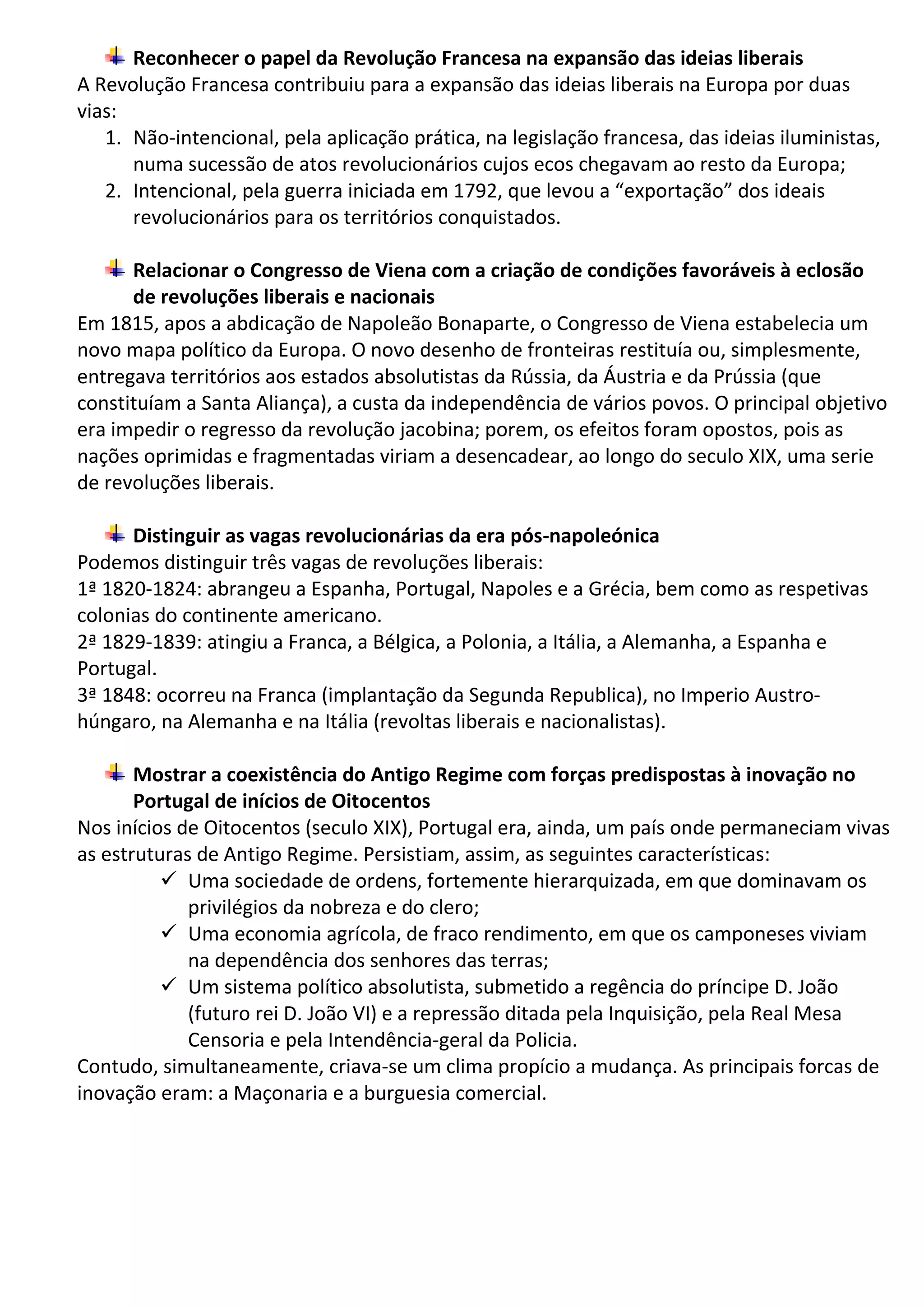 A Revolução Francesa contribuiu para a expansão das ideias liberais na Europa através da aplicação prática das ideias iluministas na legislação francesa e da disseminação destas ideias nos territórios conquistados pela França. O Congresso de Viena, ao mesmo tempo que pretendia impedir o regresso da revolução, criou condições para o surgimento de revoluções liberais e nacionais nos séculos seguintes. As invasões francesas em Portugal tiveram como consequência uma crise política, económica e social que contribui