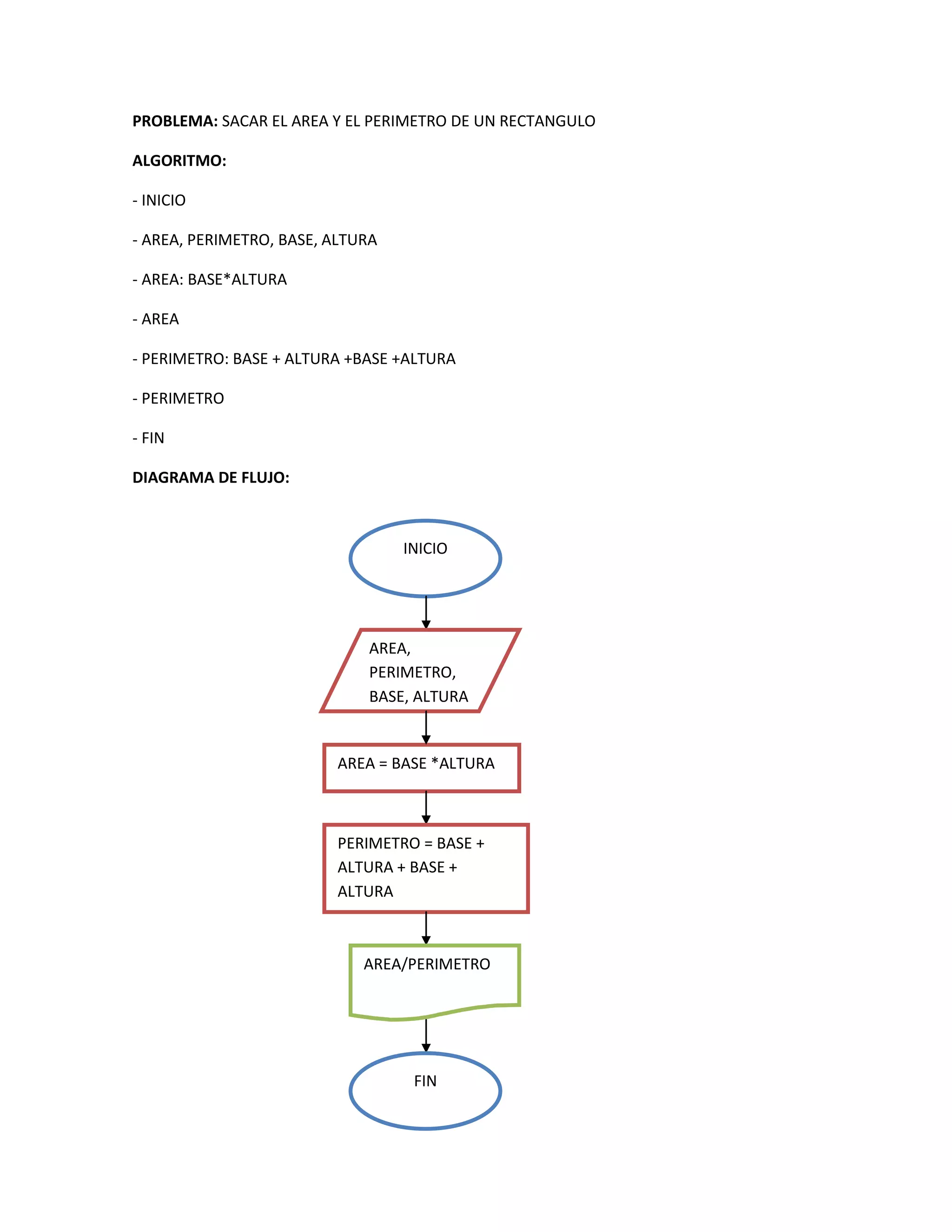 PROBLEMA: SACAR ELAREA Y EL PERIMETRO DE UN RECTANGULO