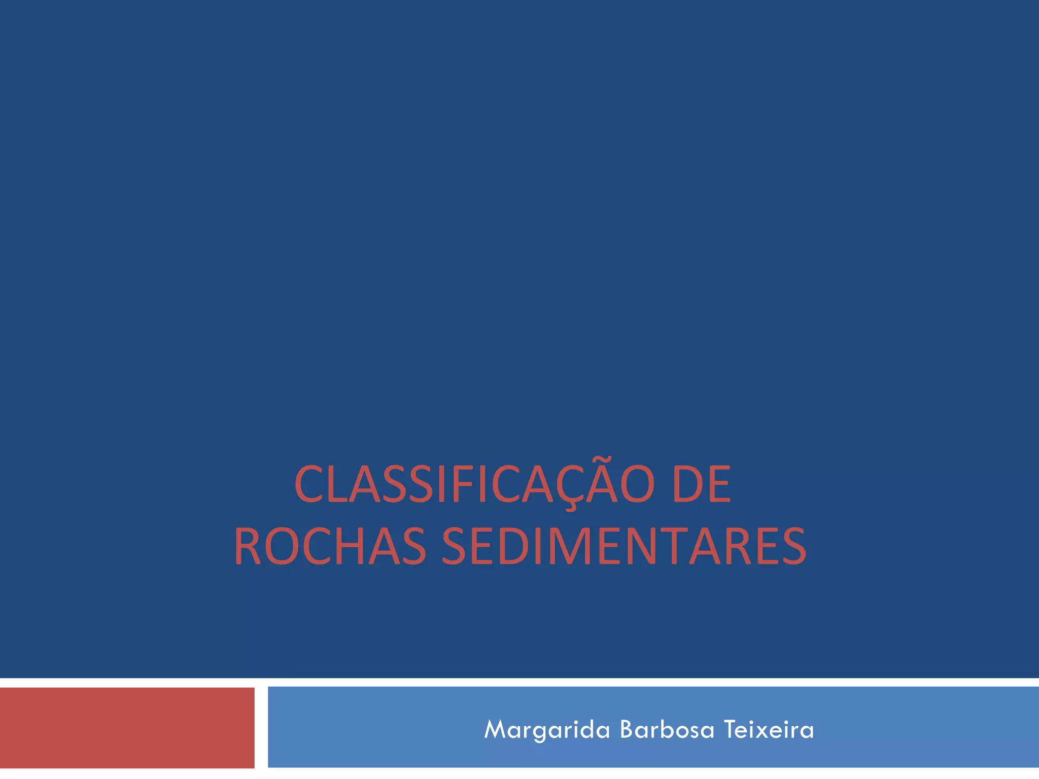 O documento descreve os principais tipos de rochas sedimentares, classificando-as em detríticas, quimiogênicas e biogênicas. Detalha as rochas detríticas areníticas, sílticas e argilosas, assim como rochas quimiogênicas como calcários e evaporitos. Explora a formação de calcários por precipitação química ou ação biológica, incluindo a formação de grutas e estalactites/estalagmites.