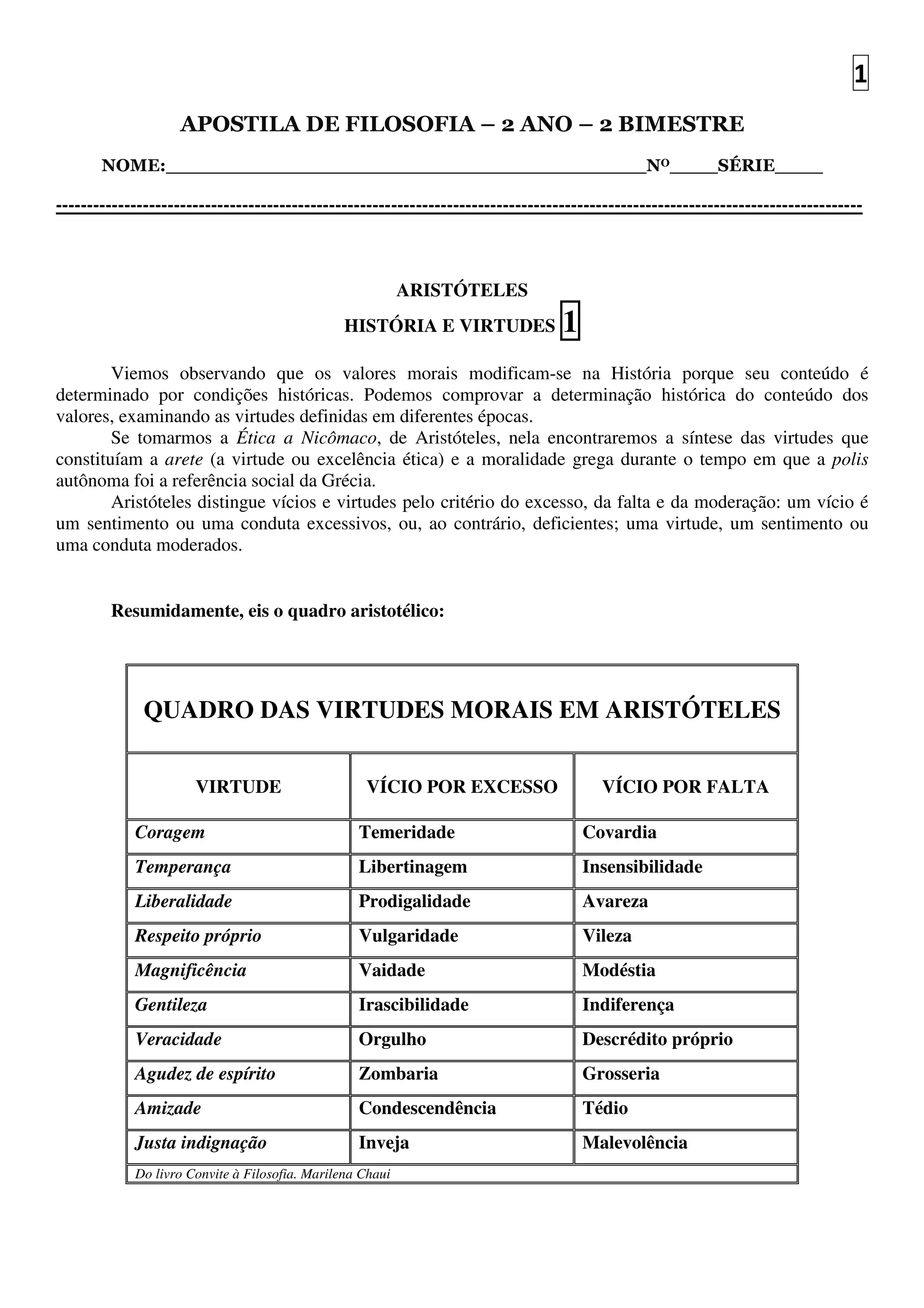 O documento resume as virtudes definidas por Aristóteles e como elas foram modificadas pela ética cristã. Para Aristóteles, as virtudes principais eram a coragem, temperança, liberalidade, respeito próprio e amizade. O cristianismo introduziu as virtudes teologais da fé, esperança e caridade, além de incluir a justiça e caridade como virtudes e transformar vícios em pecados capitais como a gula e preguiça.