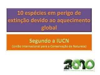 21% de mamíferos, 29% de anfíbios, 12% de aves, 35% de árvores coníferas e cicadófitas, 17% de tubarões e 27% de recifes de coral estão ameaçados de extinção, colocando em risco a biodiversidade global.