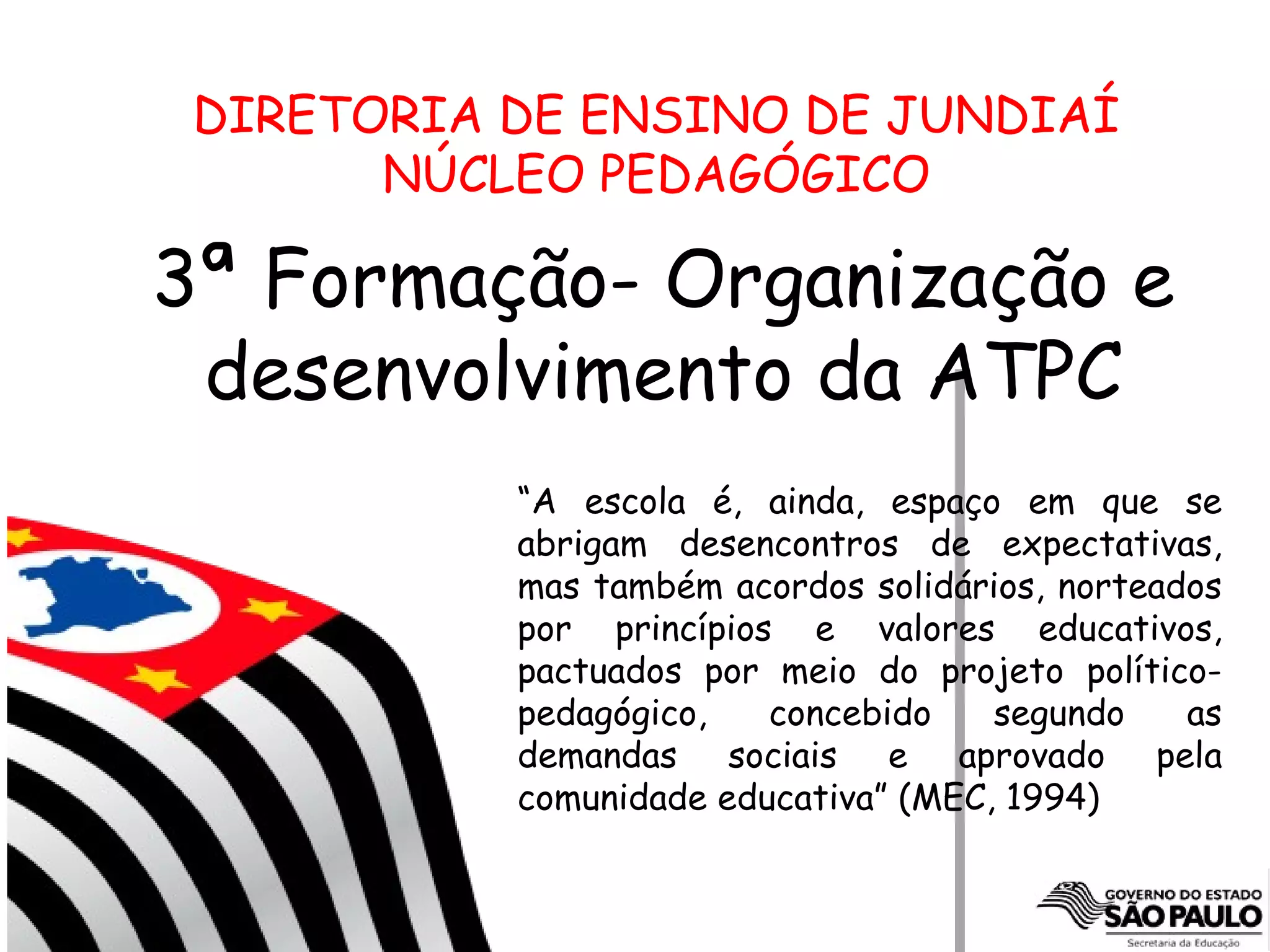 1. O documento discute a organização e desenvolvimento da formação continuada de professores (ATPC).