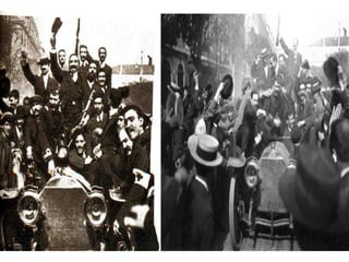 Este documento descreve a implantação da República em Portugal em 1910, substituindo a monarquia. A revolta republicana derrubou o rei Manuel II em 5 de outubro de 1910, forçando-o ao exílio. Foi estabelecido um governo provisório presidido por Teófilo Braga para elaborar as leis do novo regime republicano, que se baseava no parlamentarismo e dividia os poderes legislativo, executivo e judicial.