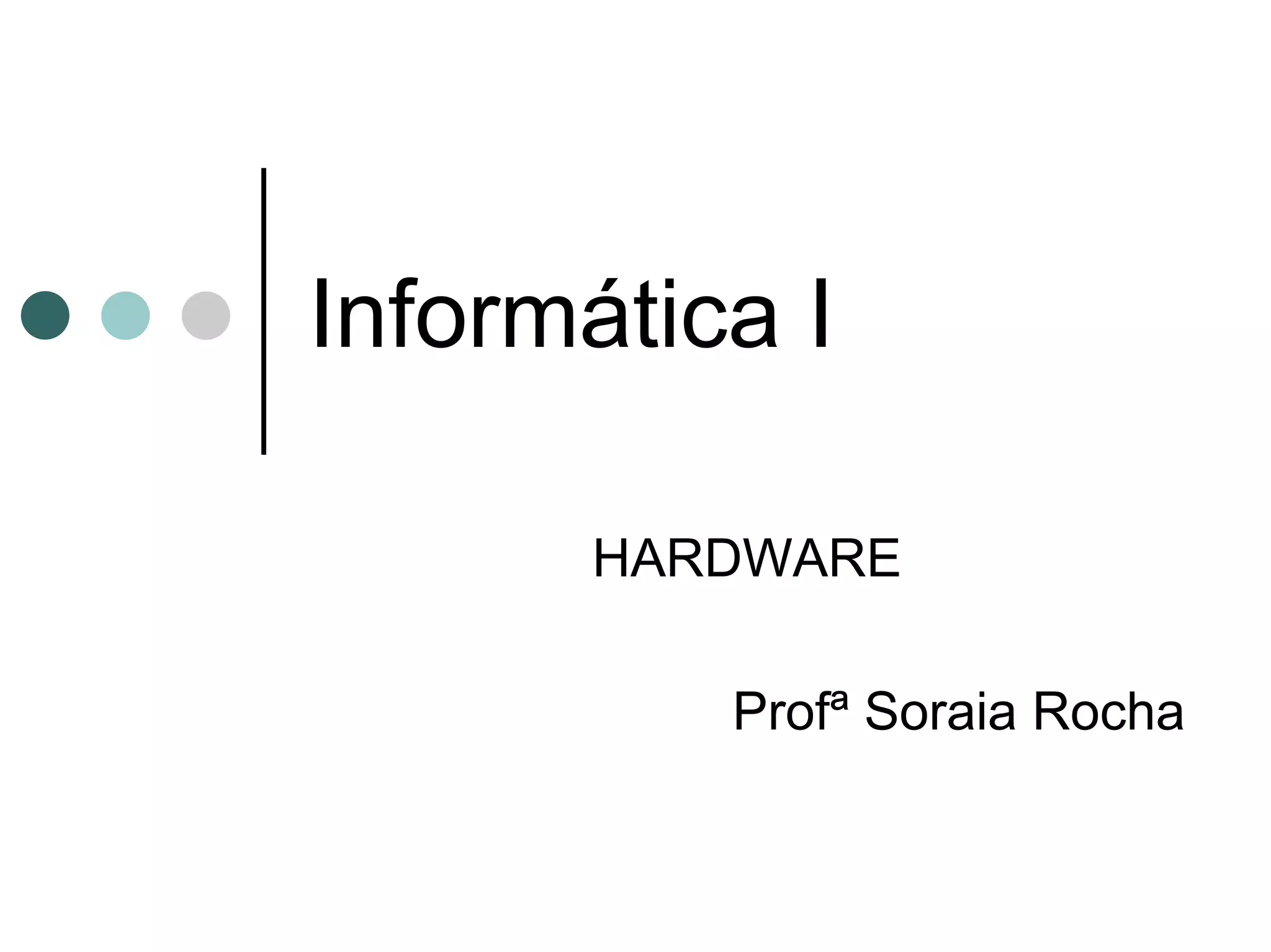 O documento descreve os principais componentes de hardware de um computador, incluindo a CPU, memória, periféricos, unidades de armazenamento e como eles interagem. Também discute como os computadores funcionam em nível básico e como cada parte contribui para o desempenho geral do sistema.