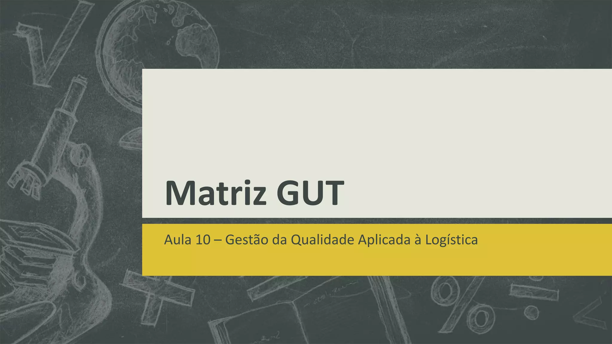 A matriz GUT é uma ferramenta que auxilia na priorização de estratégias e na tomada de decisões em organizações, levando em conta as variáveis gravidade, urgência e tendência. O método envolve listar forças e fraquezas, atribuir notas de 1 a 5 para cada variável e calcular a prioridade através da multiplicação das notas. Ao final, a aplicação do GUT permite identificar as ações mais impactantes a serem tomadas em um projeto ou organização.