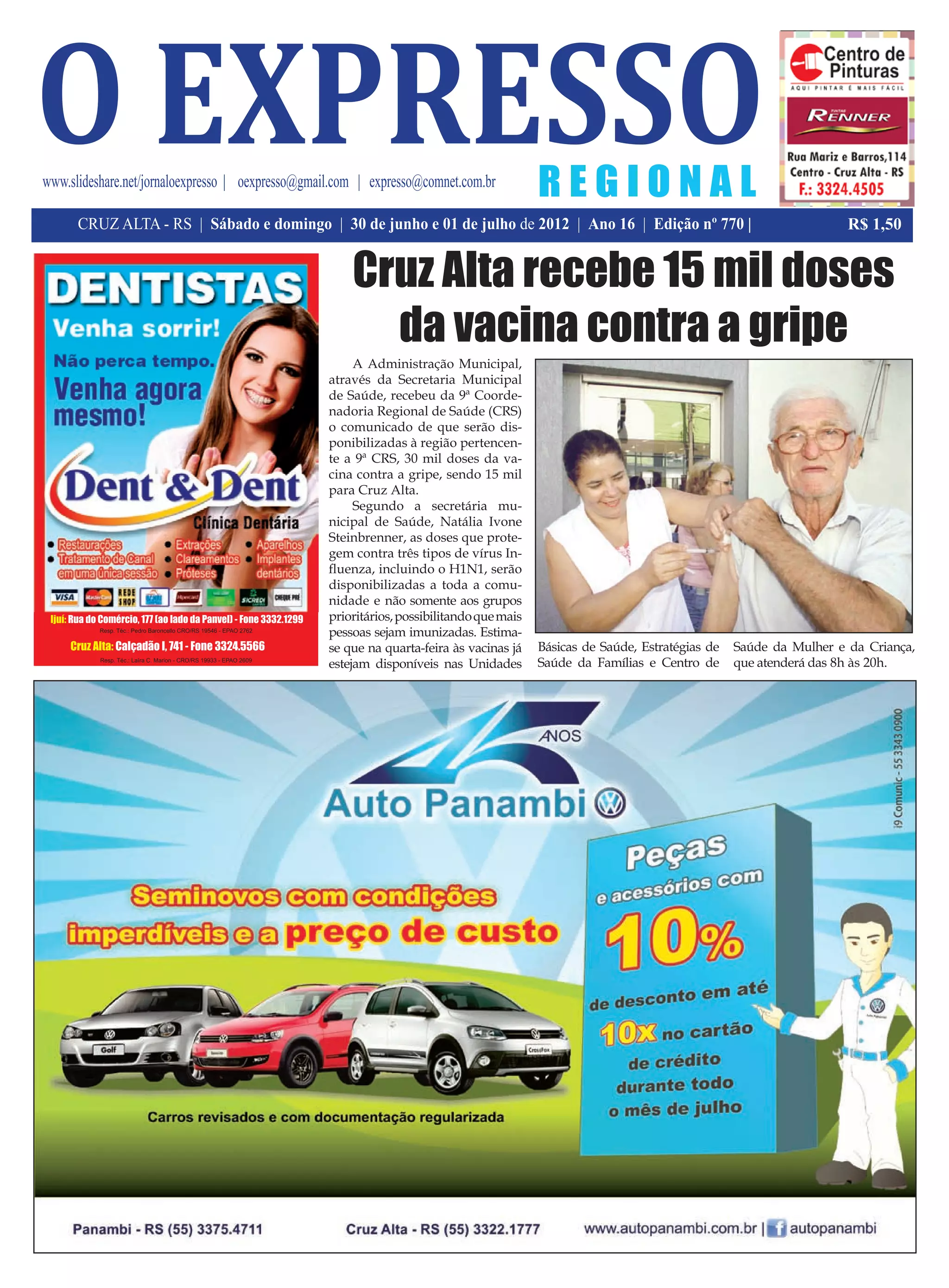 1) Cruz Alta recebeu 15 mil doses da vacina contra a gripe para serem disponibilizadas à população;