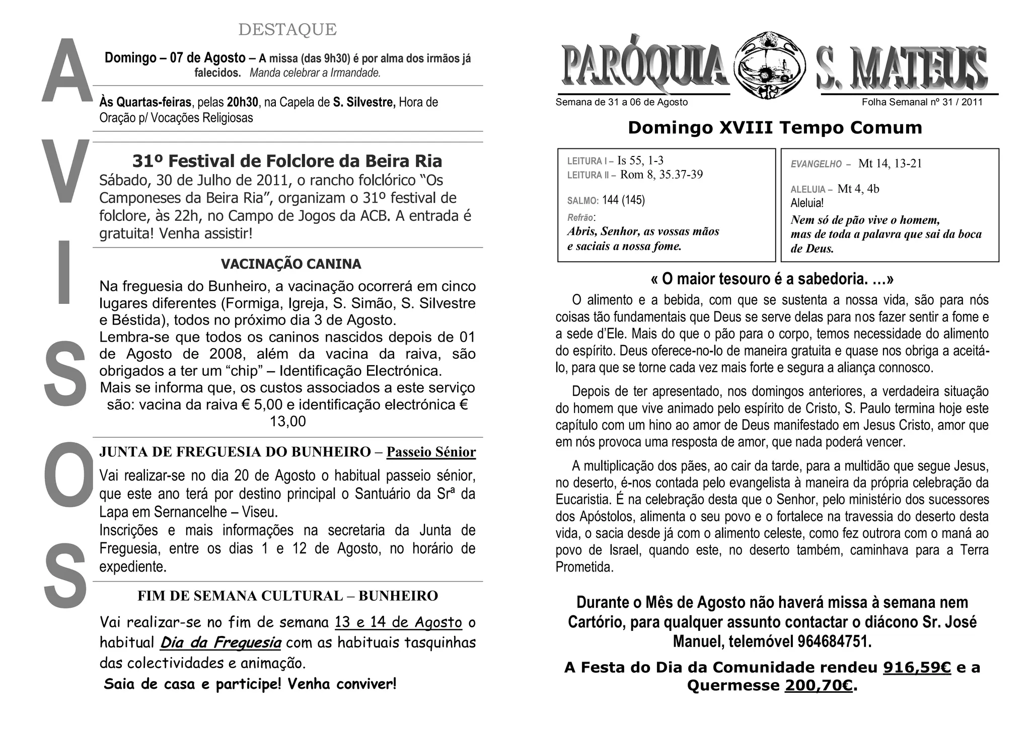 e Béstida), todos no próximo dia 3 de Agosto. coisas tão fundamentais que Deus se serve delas para nos fazer sentir a fome e
