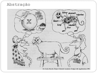 Este documento apresenta uma introdução à programação orientada a objetos (POO), destacando seus principais conceitos como classes, objetos, herança, polimorfismo e encapsulamento. A POO integra dados e operações em uma única unidade chamada objeto, permitindo modularidade e reutilização de código. Além disso, o texto discute a importância da abstração e a organização de sistemas complexos por meio de agrupamentos de objetos.