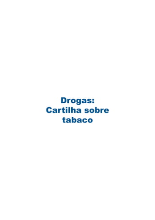 Este documento é uma cartilha sobre tabaco produzida pela Secretaria Nacional de Políticas sobre Drogas. A cartilha discute os efeitos do tabagismo na saúde e na sociedade, os componentes químicos presentes no cigarro, a legislação brasileira sobre tabaco e as influências sociais que levam ao hábito de fumar.