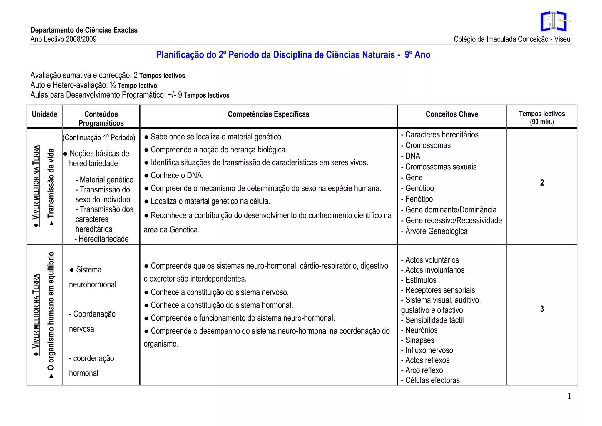 Este documento apresenta o plano de ensino para a disciplina de Ciências Naturais no 9o ano. O plano inclui duas unidades sobre a transmissão da vida e o equilíbrio do organismo humano. A unidade sobre a transmissão da vida aborda tópicos como hereditariedade, cromossomos e DNA. A unidade sobre o equilíbrio do organismo humano discute os sistemas neuro-hormonal e digestivo, incluindo a digestão e absorção de nutrientes. O plano lista os conceitos-chave, competências e a