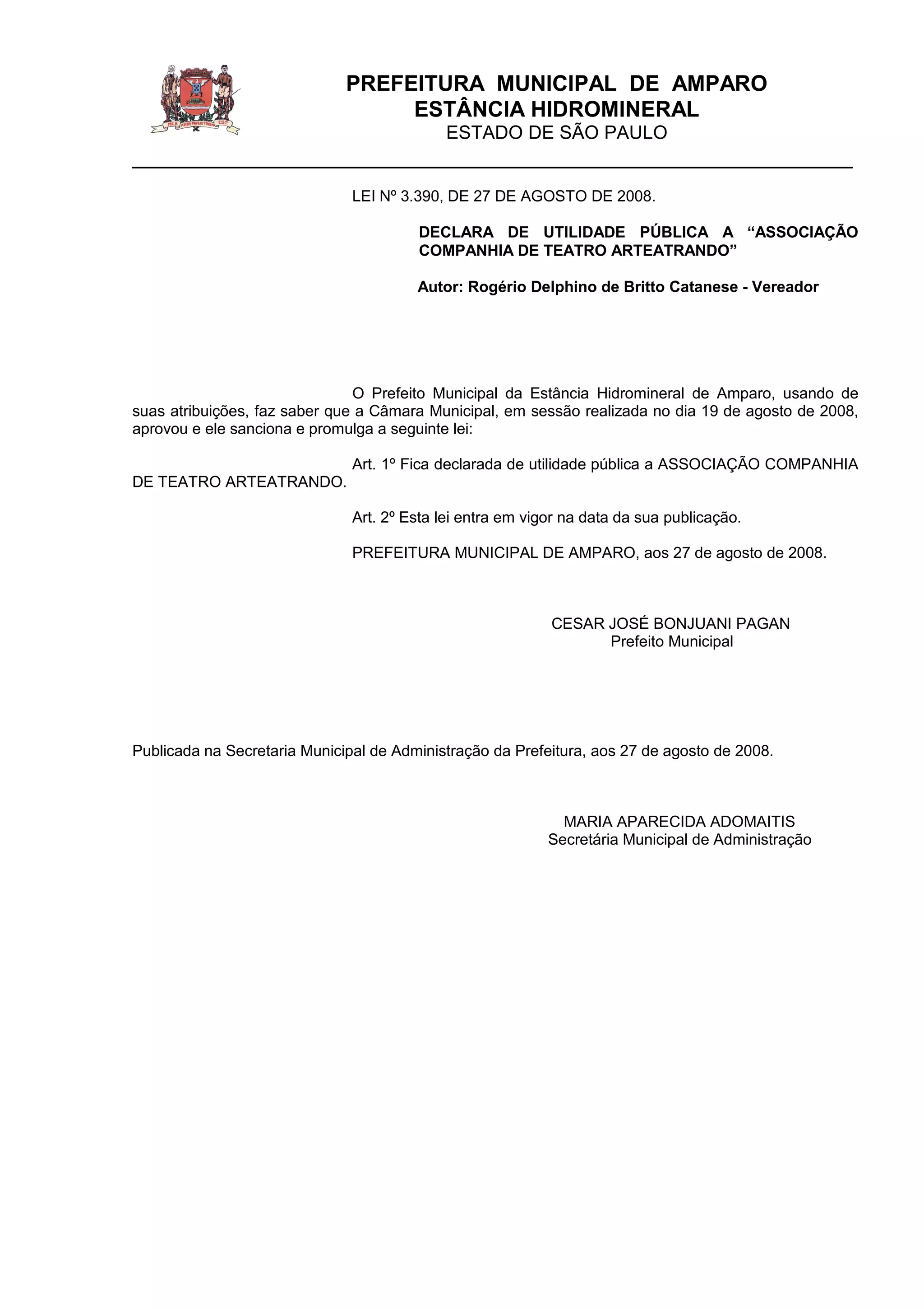 LEI Nº 3.390, DE 27 DE AGOSTO DE 2008.