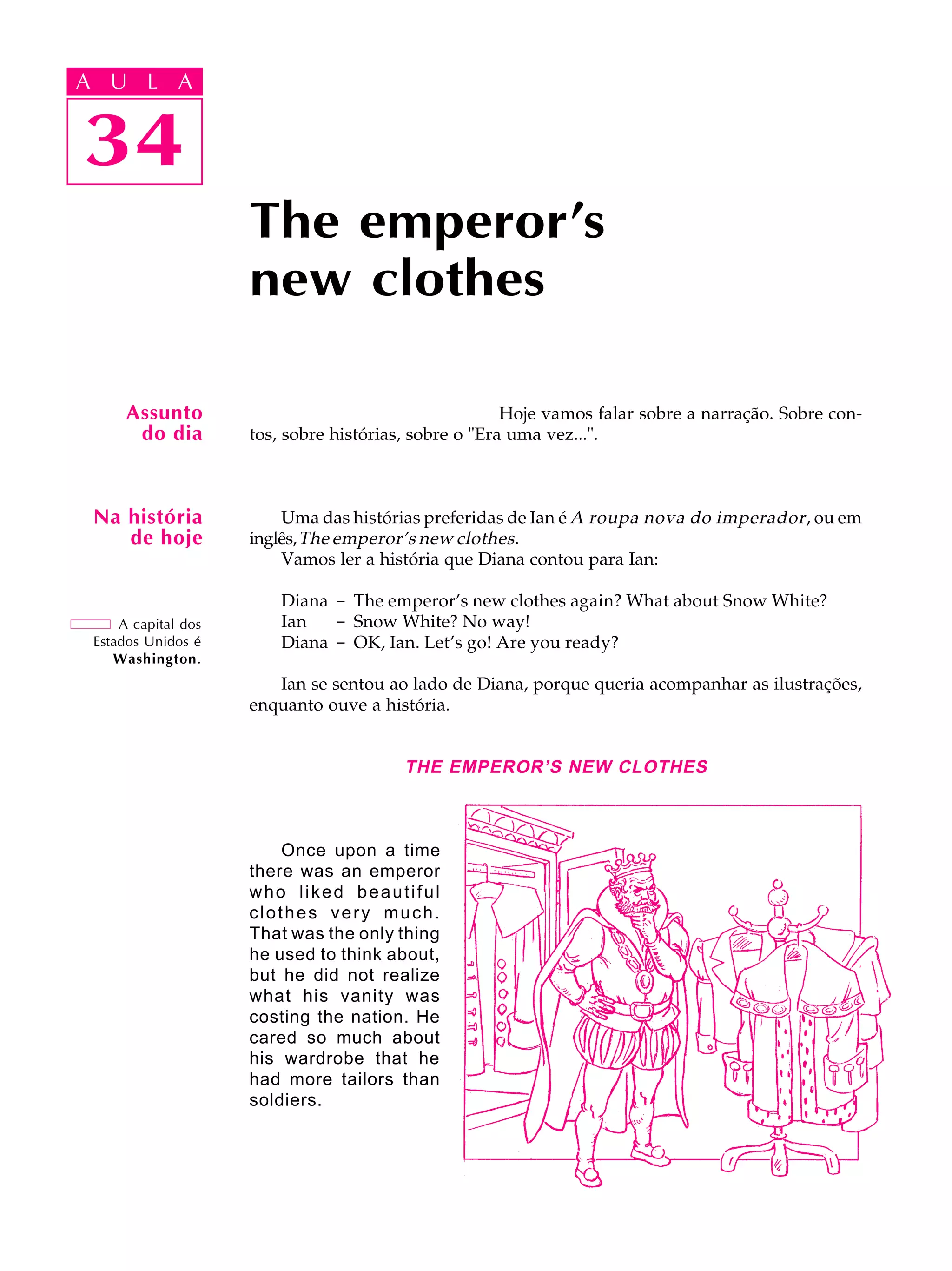 O documento apresenta uma adaptação do conto "A roupa nova do imperador" de Andersen. O resumo é: