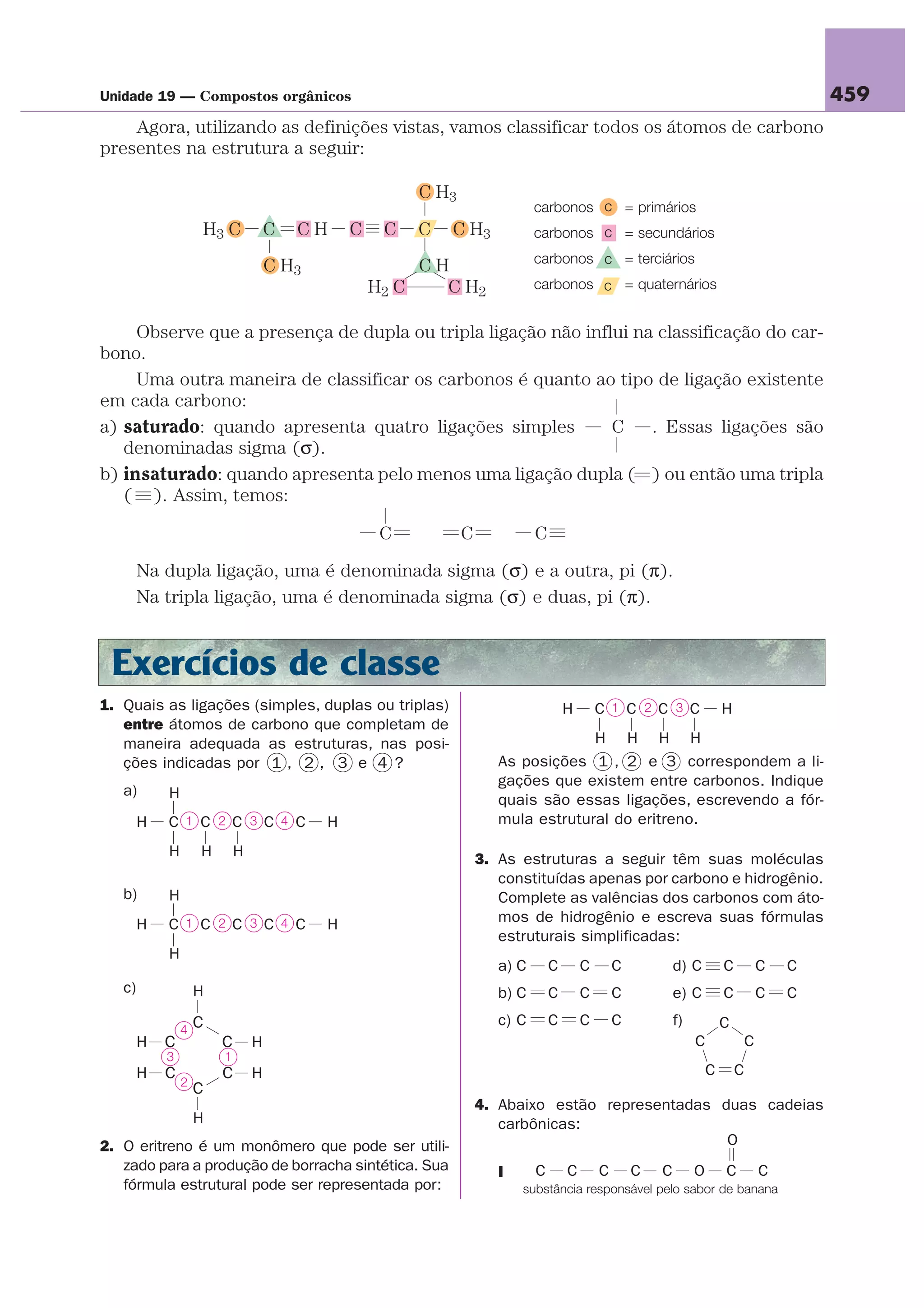 3. Exemplos de classificação incluem cadeias abertas normais saturadas e cadeias fechadas alicíclicas saturadas.