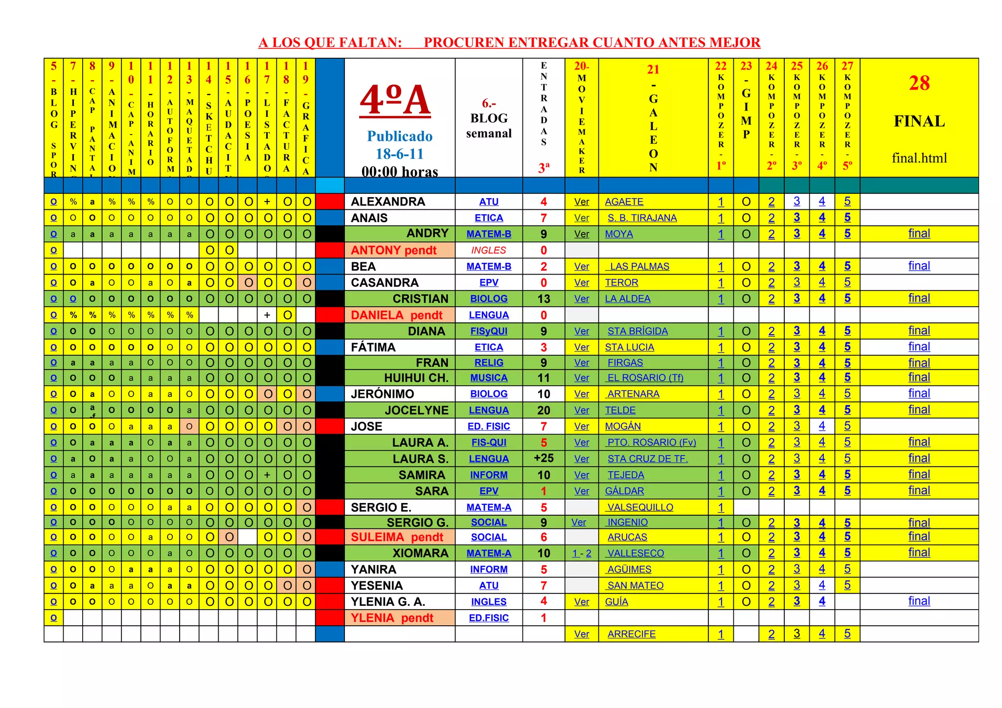 A LOS QUEFALTAN: PROCUREN ENTREGAR CUANTO ANTES MEJOR