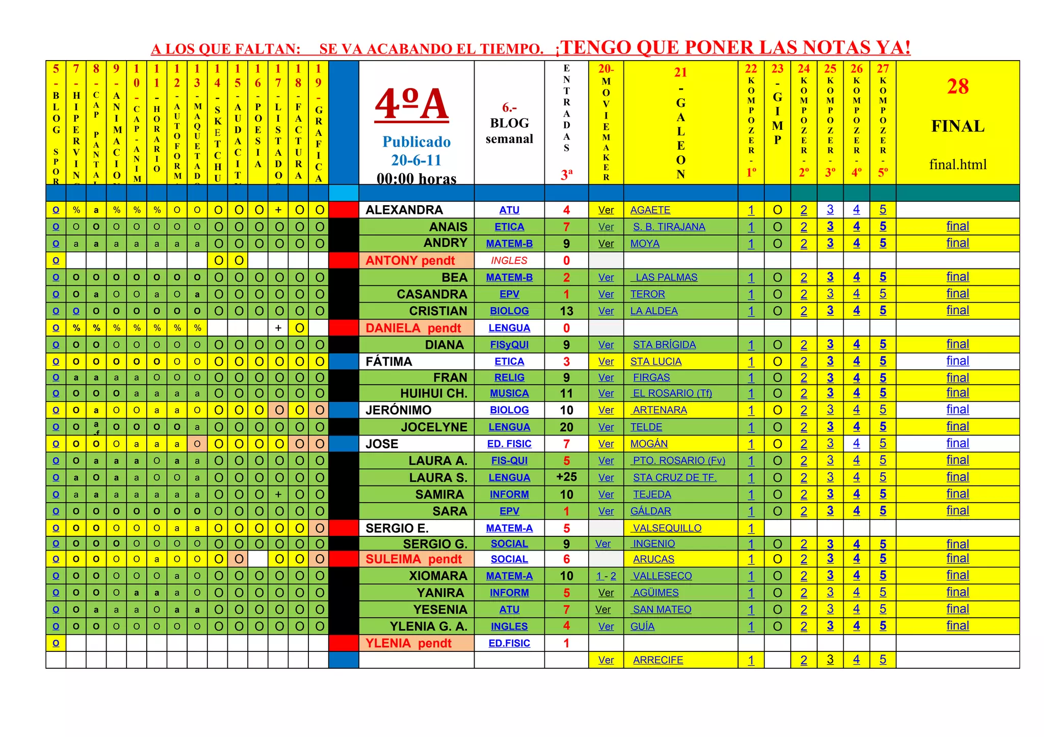 A LOS QUEFALTAN: SE VA ACABANDO EL TIEMPO. ¡TENGO QUE PONER LAS NOTAS YA!