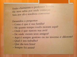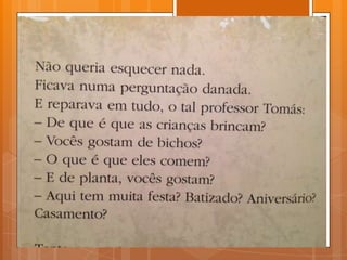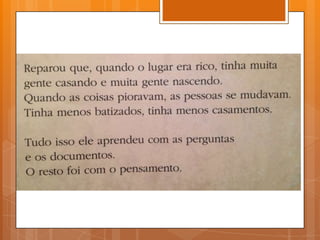 O documento apresenta informações sobre o 3o Encontro de Formação do Programa de Iniciação Científica da Escola SESC de Ensino Médio, incluindo: (1) citação de Lewis Carroll sobre caminhos e destinos; (2) análise das respostas dos educadores sobre o conceito de pesquisa resultando em cinco categorias; (3) orientações iniciais sobre o PIC.