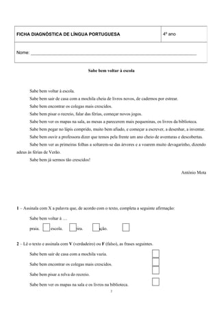 FICHA DIAGNÓSTICA DELÍNGUA PORTUGUESA 4º ano