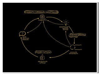 O documento discute as aplicações do design thinking e como ele pode ser usado para melhorar os negócios. Ele fornece exemplos de como o design thinking pode ser usado para melhorar o estilo, funcionalidades, solução de problemas e configuração de uma organização e oferece diferentes prazos de vantagem competitiva para cada abordagem.