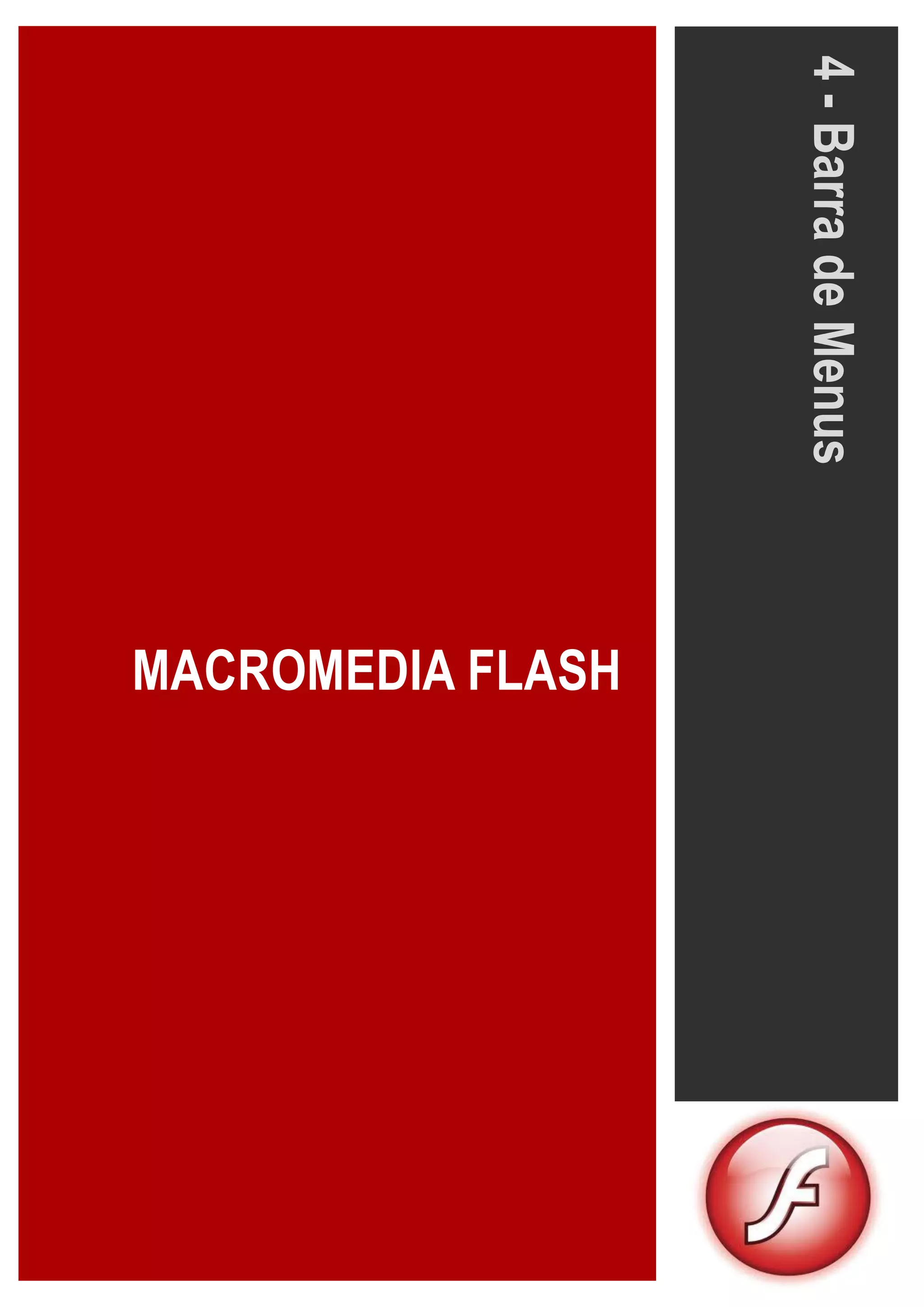 O documento descreve os menus e opções do Macromedia Flash. Inclui menus como Arquivo, Editar, Visualizar, Modificar, Texto, Comandos, Janela e Ajuda, com descrições breves do que cada um permite fazer, como criar, abrir e salvar ficheiros, trabalhar com símbolos, linhas do tempo e reproduzir o filme.