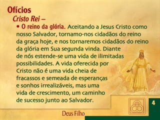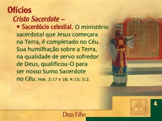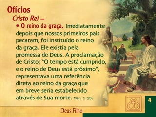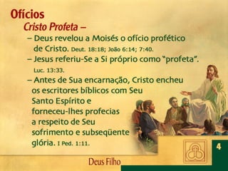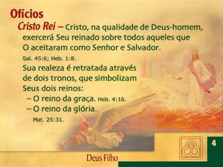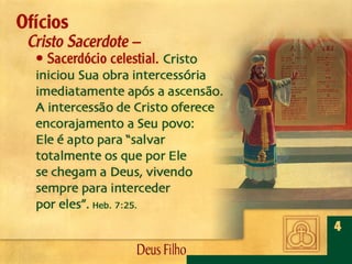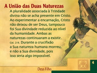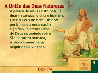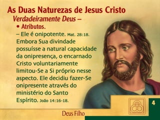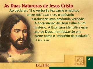 Deus, o Filho Eterno, encarnou-Se em Jesus Cristo. Por meio dEle foram criadas todas as coisas, é revelado o caráter de Deus, efetuada a salvação da humanidade e julgado o mundo.